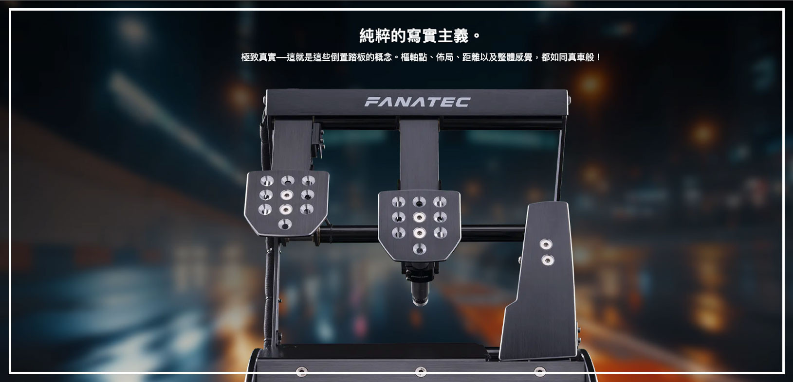 離合器和煞車樞軸點被倒置到踏板上方,並連接到非常堅固的框架上,就像 Fanatec ClubSport 系列的經典設計一樣。更長的踏板行程和踏板距離的設計靈感來自真實車輛,每個細節都體現了其設計理念。