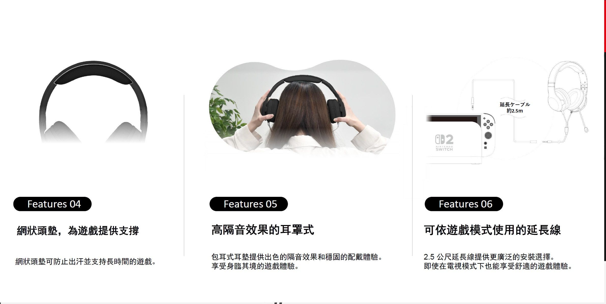NS 遊戲專用耳機標準版 / HORI 有線 / 台灣公司貨 Nintendo Switch 2