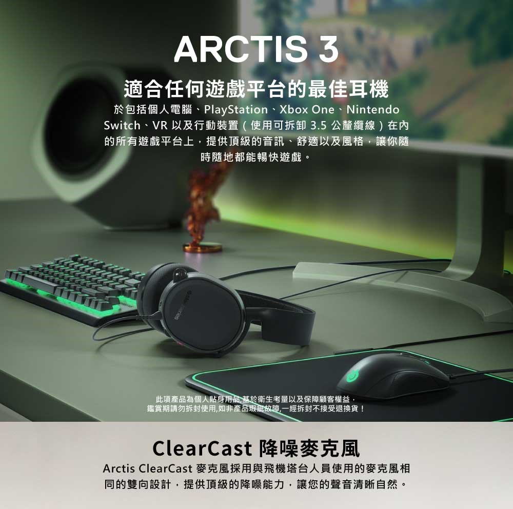SteelSeries ARCTIS 3 有線 電競 耳機【黑色】2019年版