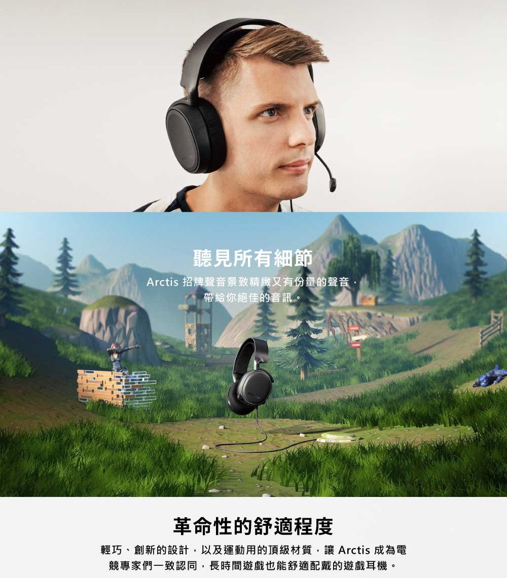 ●Arctis 招牌聲音景致有份量的聲音,帶給你絕佳的音訊。